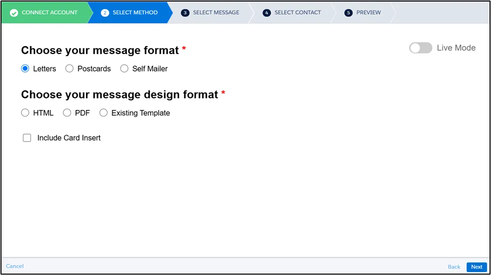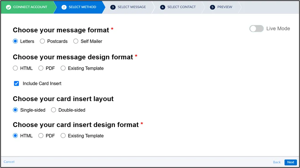 If you selected Letter as your Message Format, you’ll have the option to include a Card Insert. If you proceed without a card insert, you’ll only need to choose a Design Format for the letter.