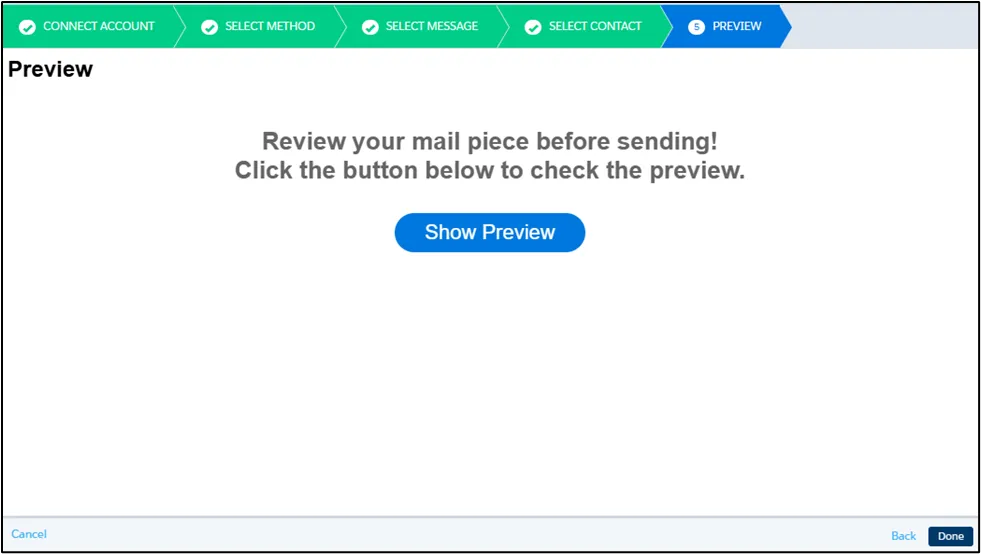 Section titled “Preview”In Step 5, you can see a test preview of your order. Click on the Show Preview button to preview the screen.