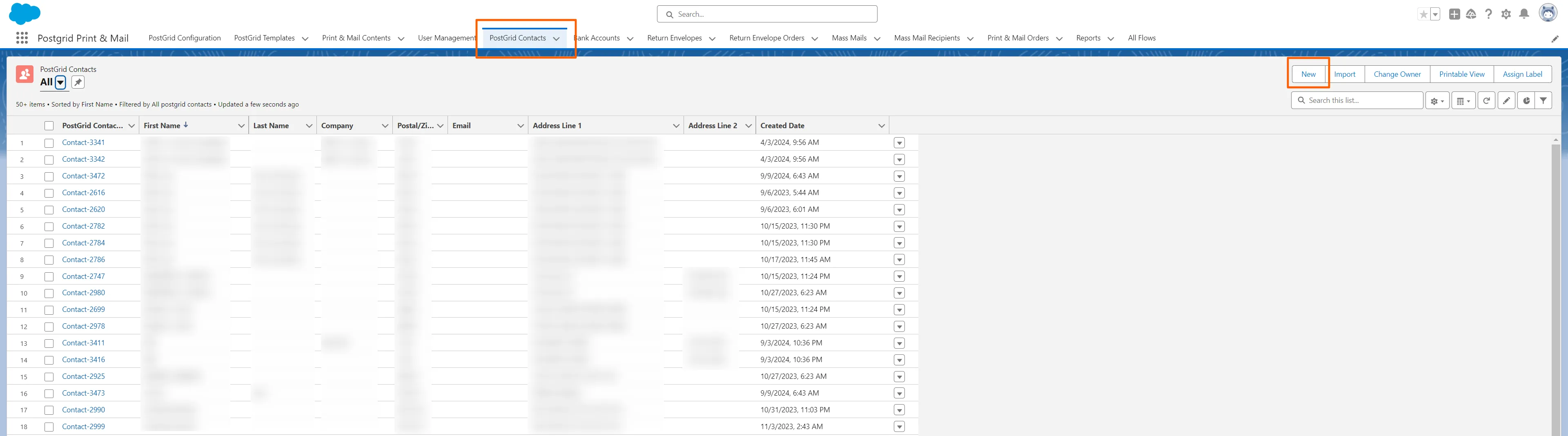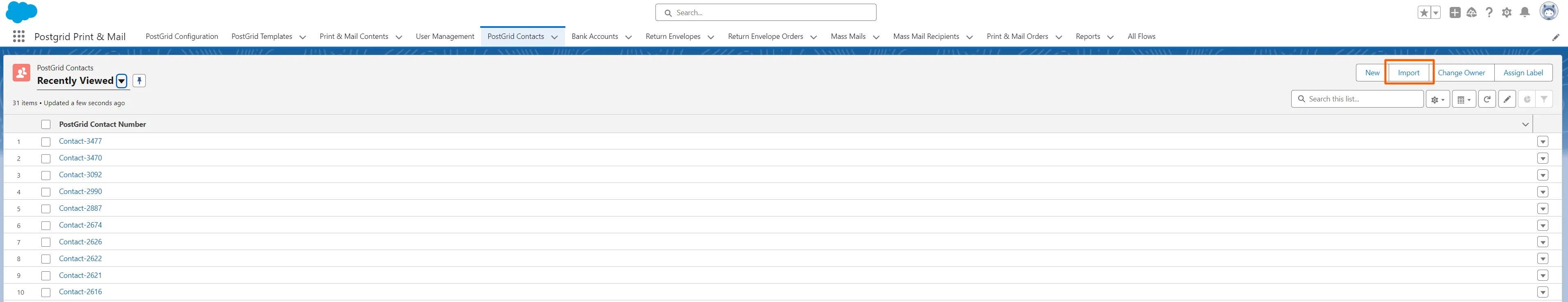 Create and import contacts in the Salesforce PostGrid app to use as recipients for individual or bulk mailings.