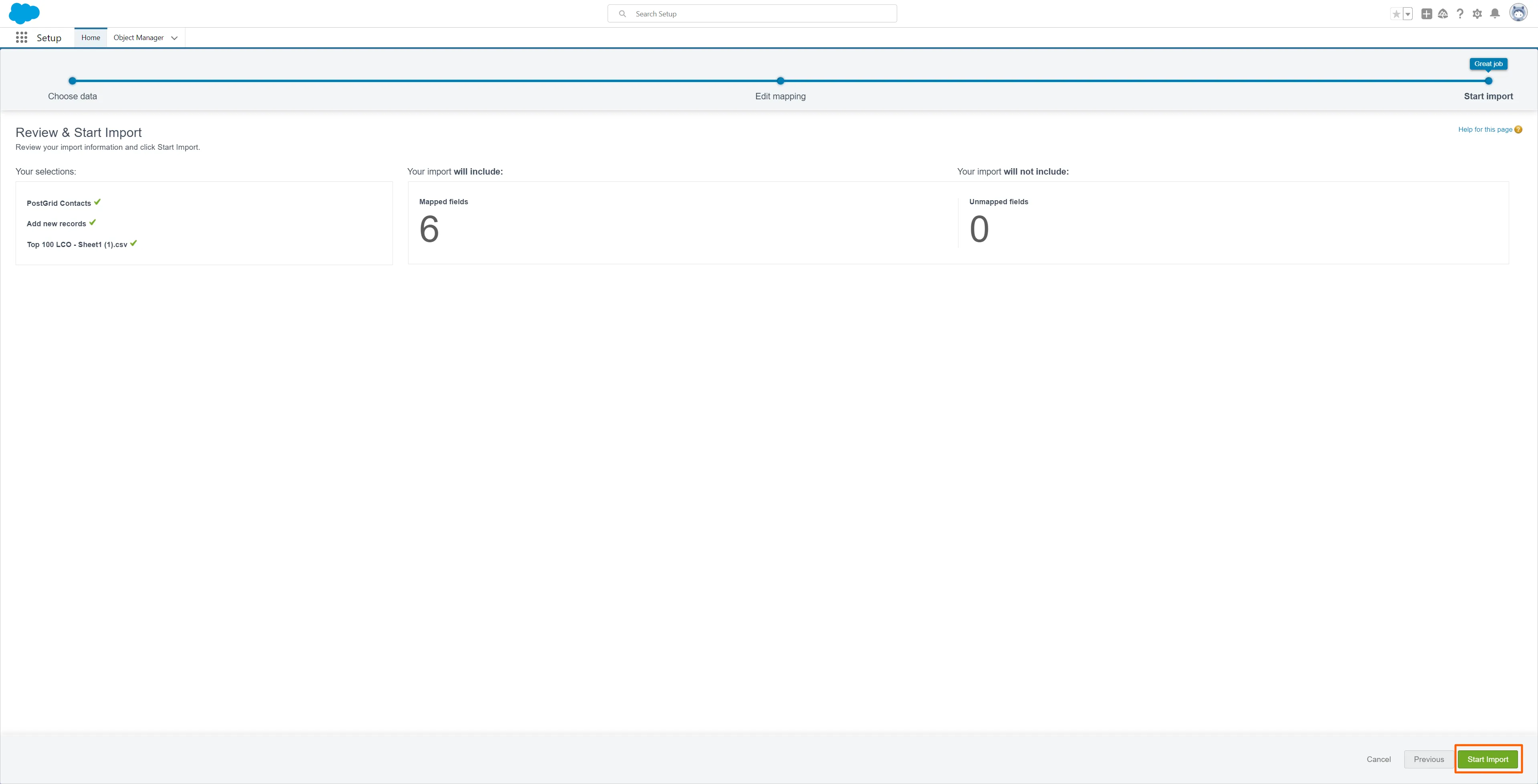 Section titled “4. Review the Mapping and click on “Start Import””