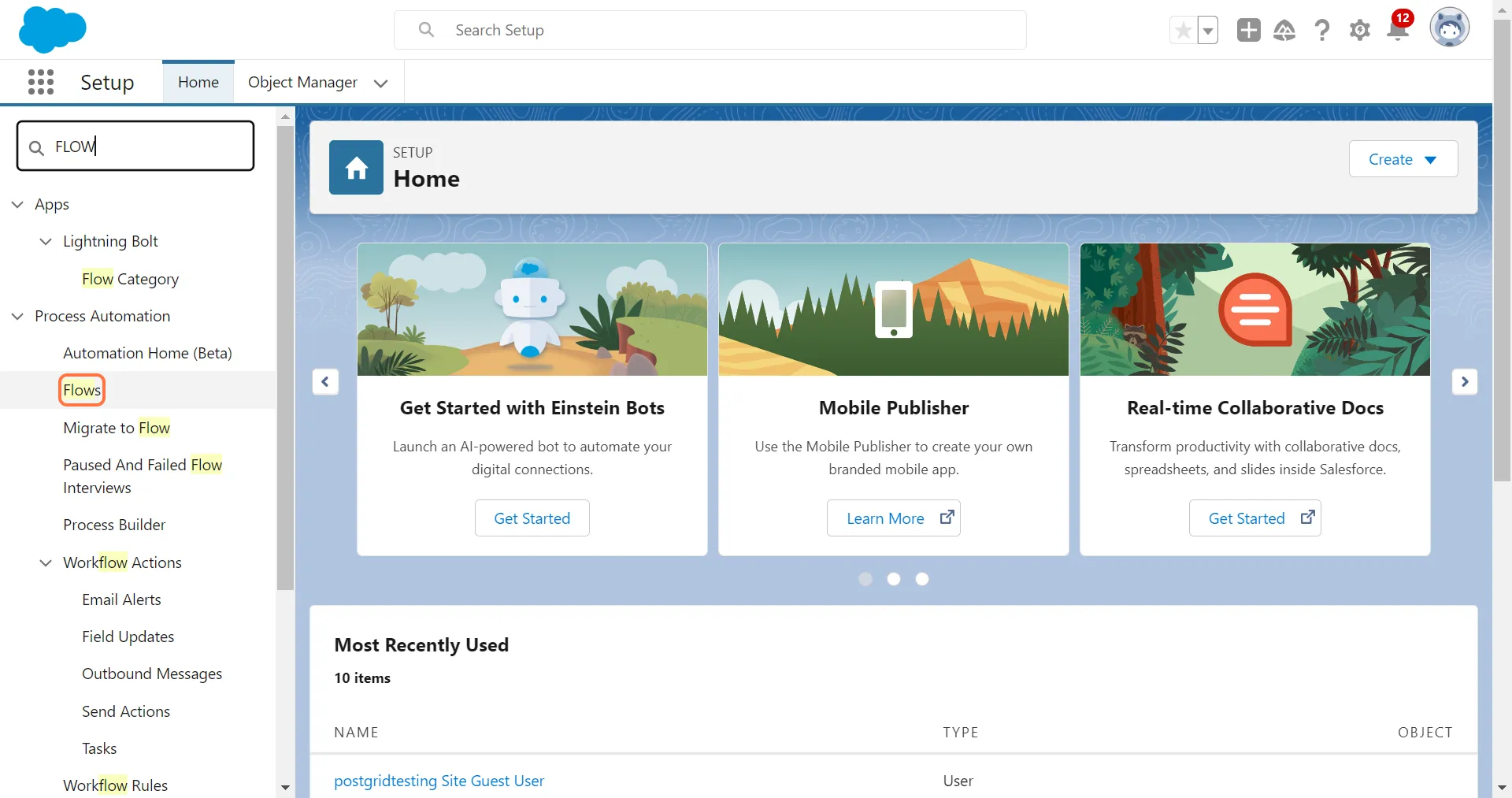 Section titled “2. Search for “FLOW” in the Quick Find and click on Flows”