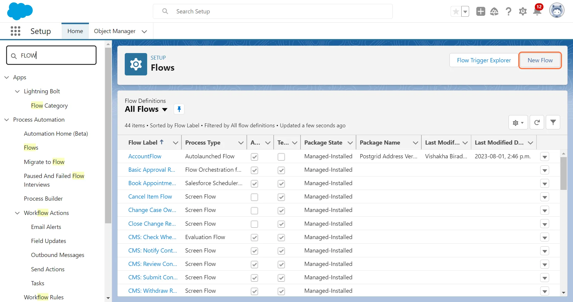 2. Search for “FLOW” in the Quick Find and click on Flows