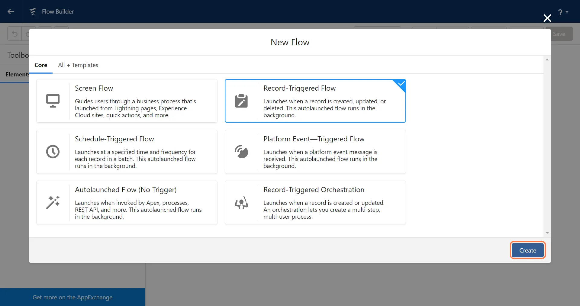 4. Select a Trigger type and click on “Create”