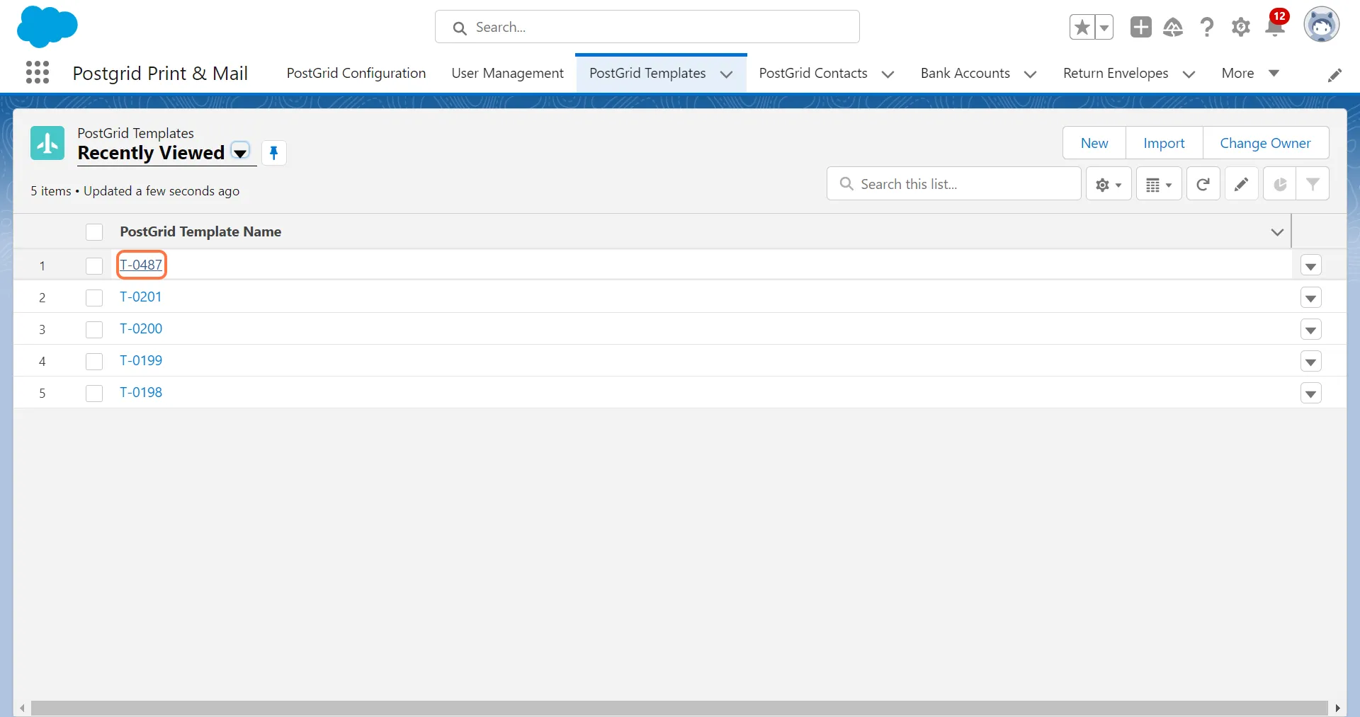 Section titled “1. Click on PostGrid Templates and then click on the desired Template”