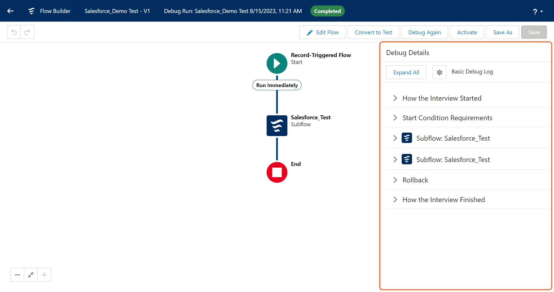 Section titled “6. Click on Details panel to check the debug details”